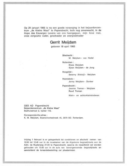 - Overleden: 29 Jan 1985, Papendrecht op 84-jarige leeftijd